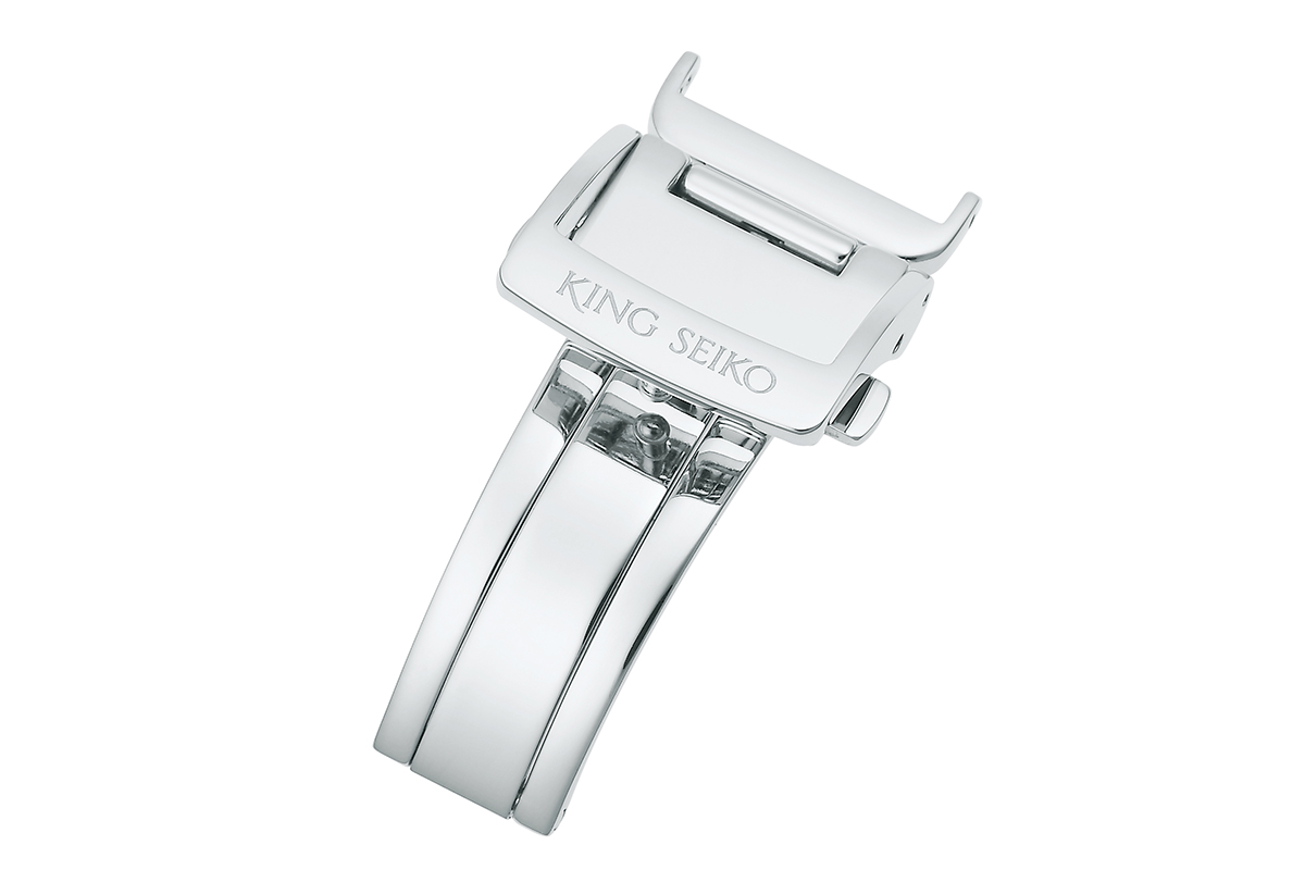 King Seiko 三折式表扣可搭配RK01B17BK和RK01B17BN 两款表带使用。按钮式开关设计使皮革表带的佩戴变得轻松便捷。